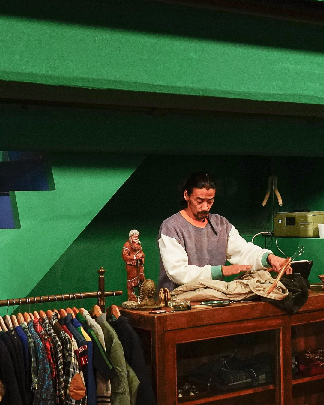 入谷の前店舗は倉庫だった場所を改装。今回も自分たちで壁の色の塗り方を工夫したという店内。地下の「DAVIDE Vintage Storage」では古着を扱う。古着には1点1点に時代背景やストーリーがあると言います。