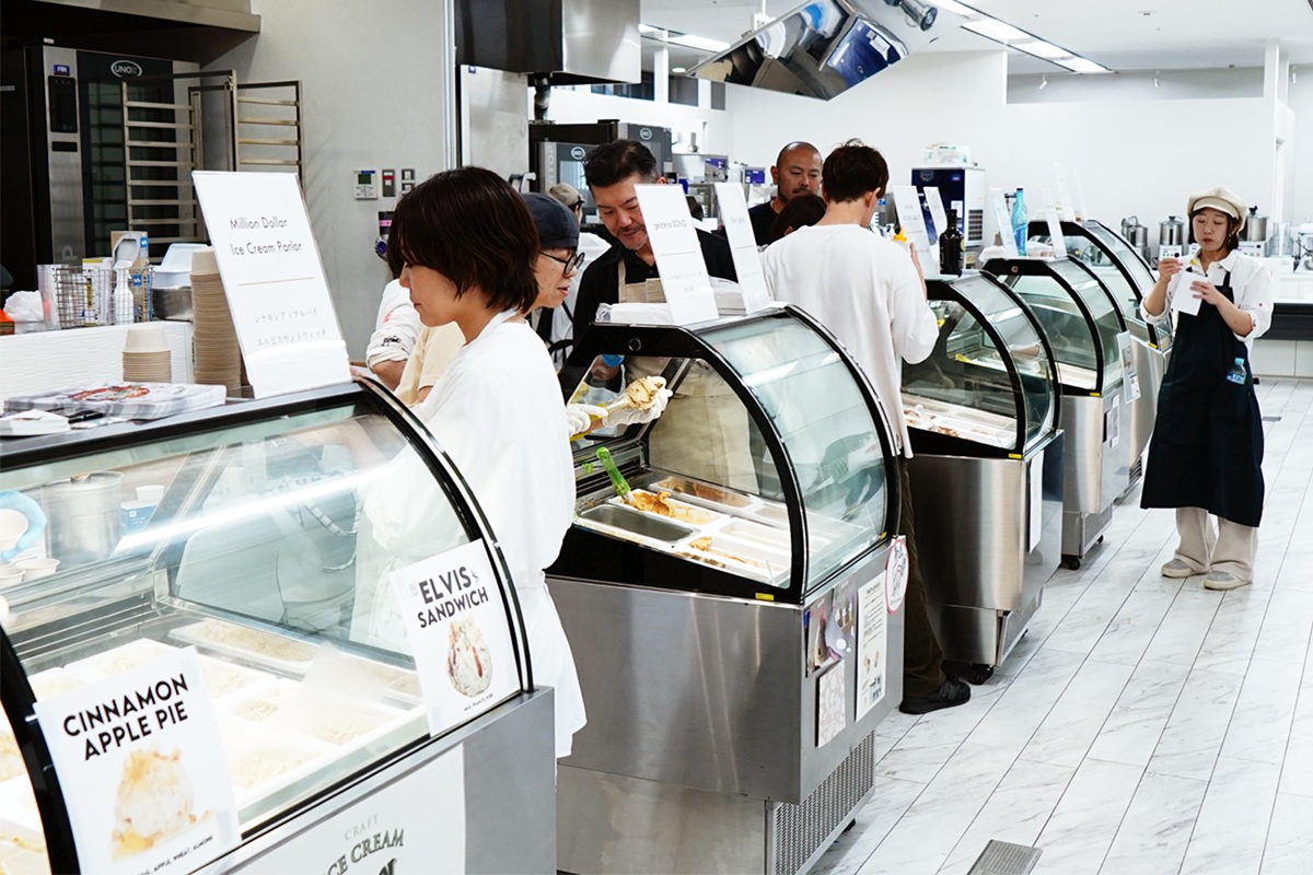 “日本発のアメリカンクラフトアイスクリーム”を掲げる人気店です。アイスクリームは添加物を使わず、地下工房で手づくり。素材の味を活かした「ナチュラル」なレシピにこだわり、ベースの牛乳・卵・砂糖・水分量などを細かく調整しています。
